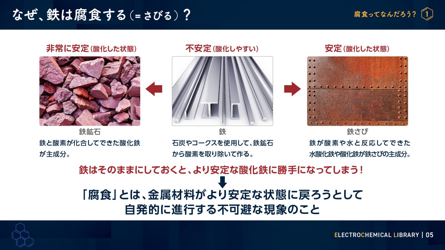 金属は身の回りのあらゆる製品や社会インフラを支えていますが、空気や水に触れることで「腐食(さび)」という避けられない現象が進行します。