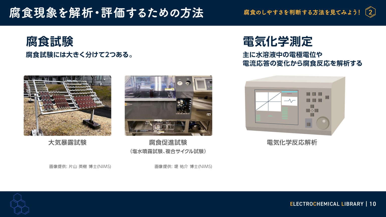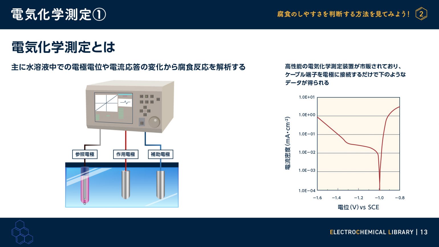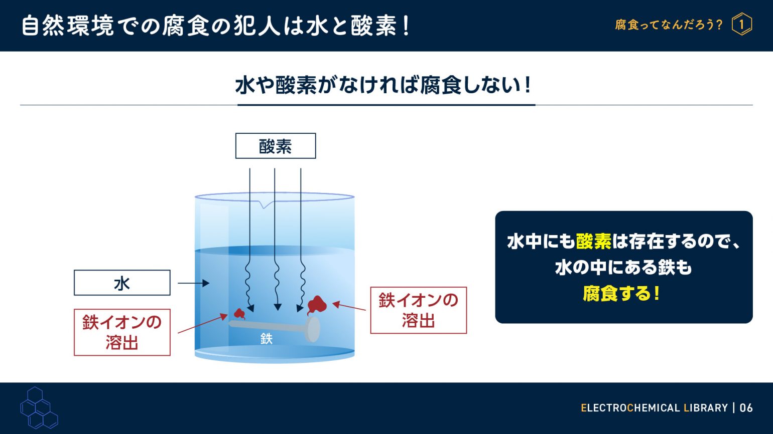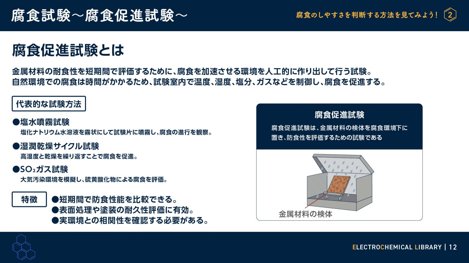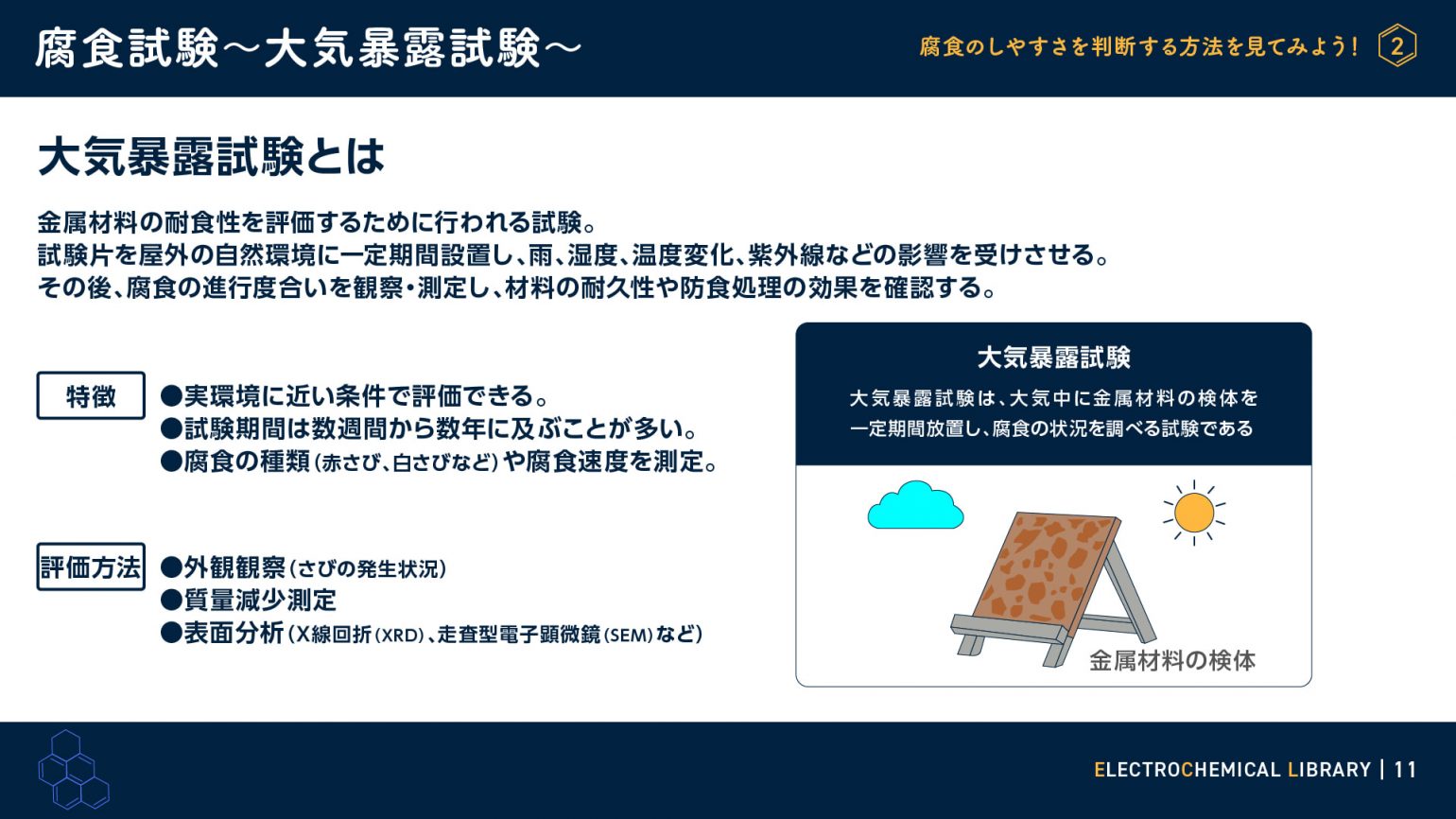 本コンテンツでは、腐食とは何かという基本的な考え方から、その起こりやすさを評価する試験方法、そして腐食を抑えるための防食技術までを、電気化学の視点を交えて分かりやすく解説します。